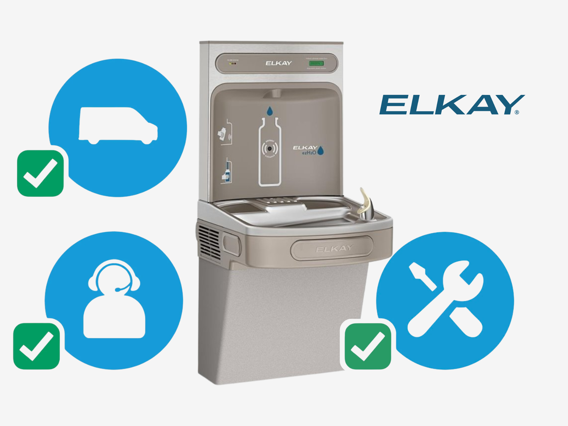 Our technicians service and maintain Elkay water systems in diverse applications. If it's a one-off service call or ongoing care you need, we can help with: